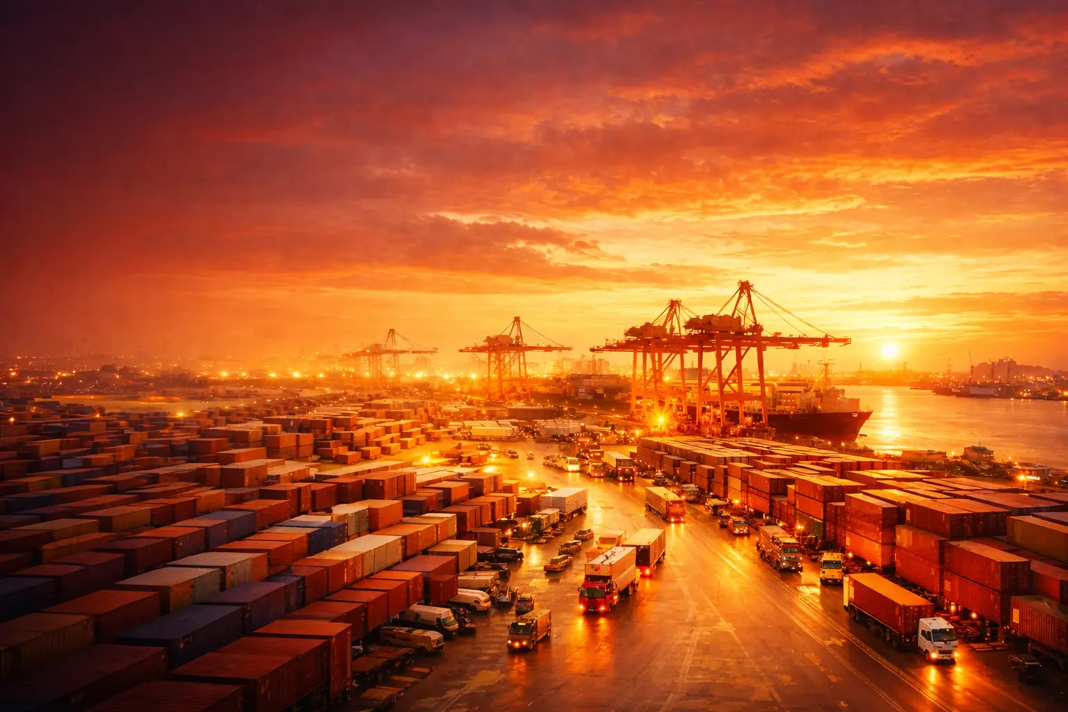 Operasi pelabuhan komprehensif termasuk penanganan kargo, penyimpanan, dan fasilitasi kepabeanan di pelabuhan utama Indonesia.